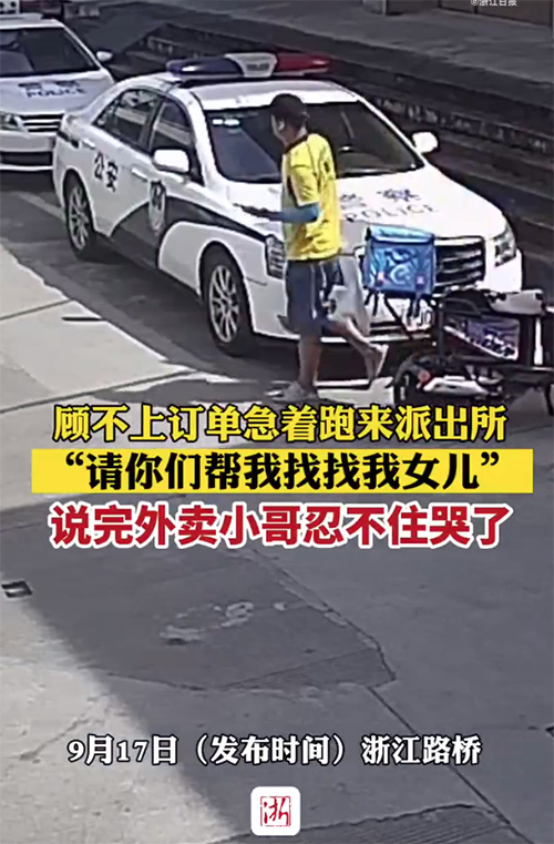 近日,浙江路桥的一名外卖小哥顾不上着急的订单,抹着眼泪冲进派出所。原来他女儿趁家人睡觉时偷偷跑了出去,夫妻俩醒来后才发现女儿不见了。好在有好心人看到报了警,民警带回女孩后,小哥抱着女儿哭了起来,在感谢民警后回了家。生活不易,但总有人默默守护,为好心人点赞!