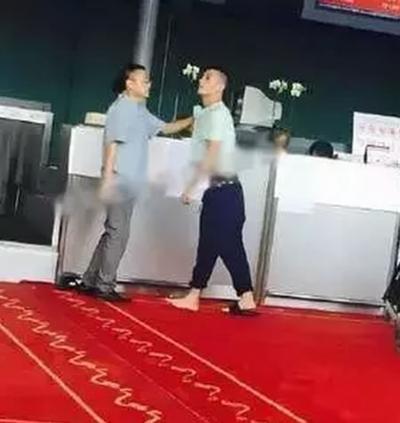 看,大叔抓住了陈冠希的衣领。比大叔高出一截的陈冠希手上却没有动作。没有经纪人也没有助手帮忙,陈冠希在冲突中,连一只鞋都不见了,一只脚光秃秃地站在地上!!