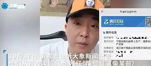 10月17日,大象新闻记者从消费者处获悉,网红“柴怼怼”(原名柴某前)等人涉嫌生产、销售伪劣产品案迎来关键进展。