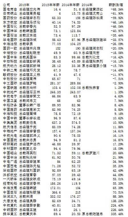 原标题:央企总经理2015年薪酬排行:最穷只拿6万元