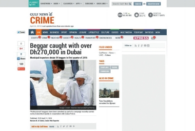 在迪拜警察局的网站上,输入“乞丐”的关键词,会马上显示过往警方抓捕乞丐的相关新闻。迪拜警方表示,乞丐不仅是穷人,很多经济上并不贫穷的人也会自愿成为乞丐。