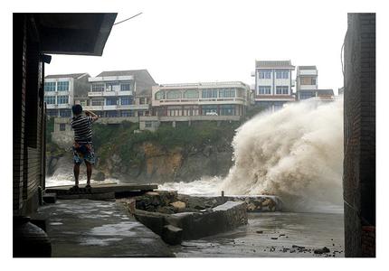 湛江市霞山区东面大面积水浸,尤其是东堤路,严重被海水浸没,两边的海鲜产品铺位浸入水中,大量海产品和装运海产品的泡沫箱等物,漂在水中。一些商铺员工,脱衣奔入,在水中、水面,到处抢救物资。