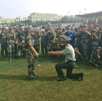 9月23日,青岛理工大学临沂校区举行2016级新生军训总结大会。军训结束后,承担这所学校军训任务的教官向大一女生公开表白,现场公开表白图片很快被上传网络并引发广泛议论。