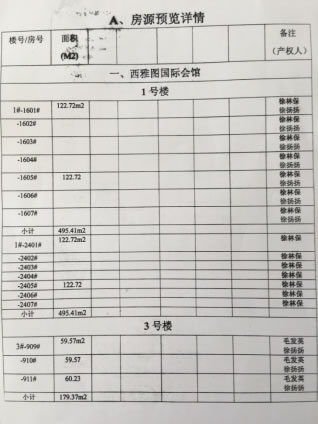 附:爆料人向记者提供调查到的部分相关房产数据: