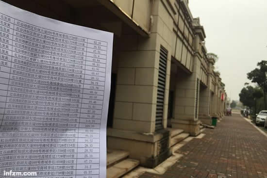 徐林保在海域香廷小区的部分物业明细,背景是该小区的商铺。