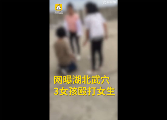 上述视频最先从武穴当地的QQ空间传出。长达13分钟的视频显示:一名穿粉色衣服的年轻女生掌掴另一名穿棕色衣服的短发女生,口中喊着“跪下”。棕衣女孩拒绝后,粉衣女孩随即抓住其头发并击打头部,另一穿蓝裙女生随即上前一起殴打;头部遭击打7次以后,棕衣女生跪在地上,又被粉衣女生连续掌掴近20下,蓝裙女生和另一白衣女生随之加入殴打,边打边说“天天拿着钱装X买化妆品”。
