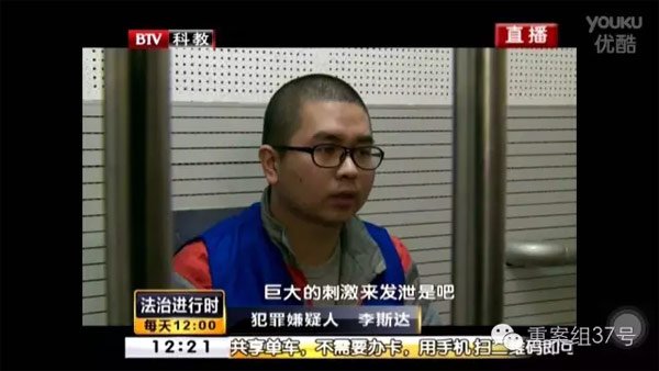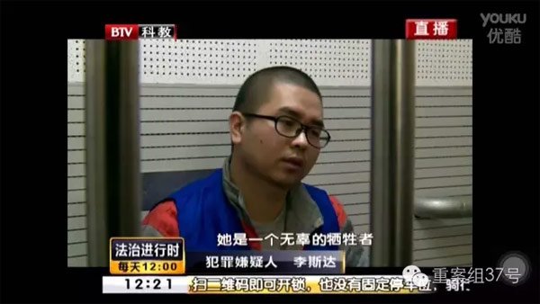 ▲在接受检察官讯问时,李斯达称周云露是“无辜的牺牲者”,他杀人只是为“发泄”。 视频截图