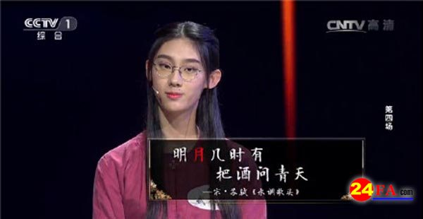 当时,武亦姝与对手围绕“月”字吟诗,她说出“明月几时有,把酒问青天”之后,被提醒这句诗重复了。