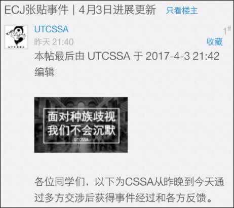 不少华人学生都对此感到愤怒,并向校方投诉。3日,UTCSSA通报了多方交涉的最新进展。