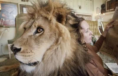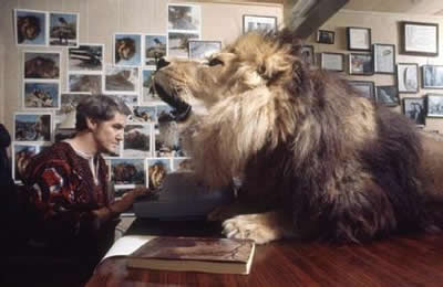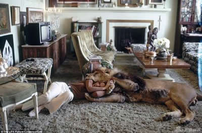 1971年,狮子尼尔与蒂比·海德莉在她位于加利福尼亚的家中。于是,他们真的和一头名叫尼尔的狮子一起生活起来。摄影师迈克尔罗杰尔记录下了他们的生活。