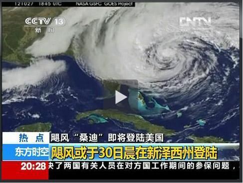 飓风“桑迪”登陆美东海岸,多州进入紧急状态,五千万人或受灾。北京机场今天下午三个航班取消。