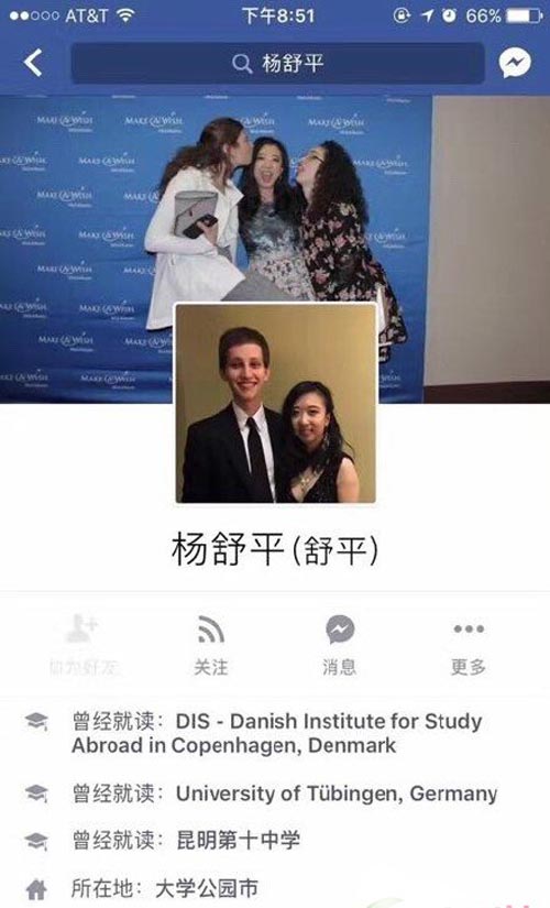 马里兰的女孩子被扒了,昆明人,昆明一中的,叫杨舒平。带了五只口罩,昆明的空气有这么糟吗?