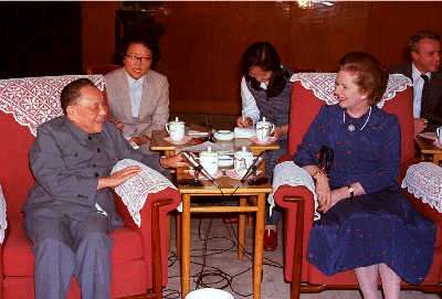 1982年12月24日,邓小平在人民大会堂会见英国前首相撒切尔夫人。资料图