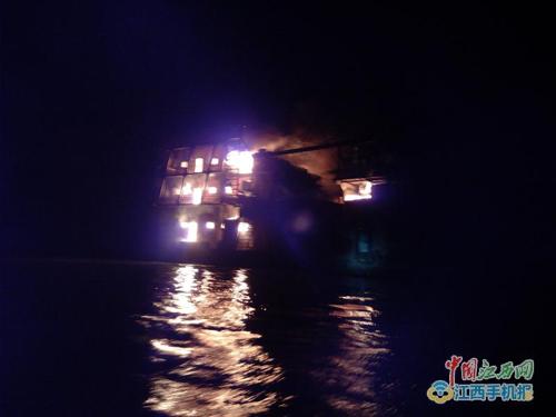 原标题:鄱阳湖面火光熊熊 九江一装60吨柴油采砂船夜间失火(图)