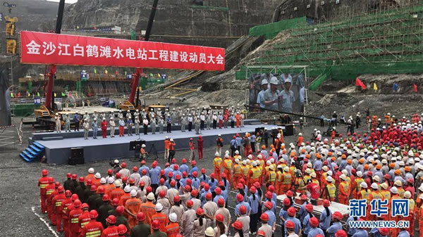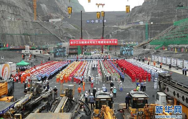 8月3日,金沙江白鹤滩水电站全面开工仪式在大坝基坑底部举行。当日,全球在建装机规模最大水电站白鹤滩水电站进入主体工程全面建设阶段。白鹤滩水电站位于四川省宁南县和云南省巧家县境内的金沙江干流下游河段上,总装机规模达1600万千瓦,是仅次于三峡工程的世界第二大水电站。该工程由中国三峡集团承建,是国家能源战略布局“西电东送”的骨干电源点。新华社发