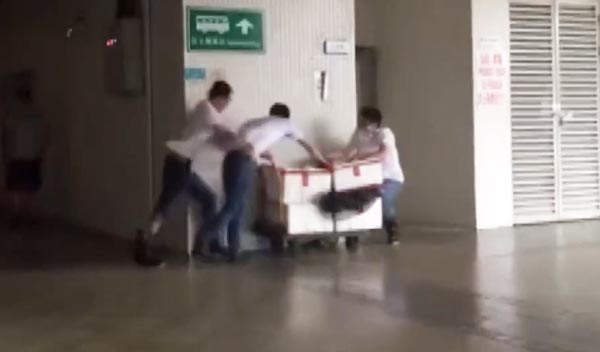 台风天鸽袭来,珠海刮起大风,部分区域树被吹断,外出要千万注意!港湾大道银坑村口路段南往北方向非机动车道有树技往机动车道倒下。各位司机师傅行车注意安全!视频中一小区的空调被吹倒挂在墙边摇摇欲坠,而另一个画面显示,三男子推一手推车的货艰难前行,转弯处时其中一男子站立不稳被大风吹倒!