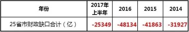 我们将这25个省市的财政缺口数据汇总起来,我们将得到一个很惊人的总数,见下表: