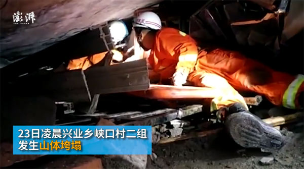 8月22日晚,四川雅安天全县兴业乡发生强降雨。23日凌晨峡口村二组发生山体垮塌,致一农房倒塌4人被掩埋。目前4人已找到,1人确认死亡3人送医暂无生命危险。