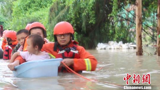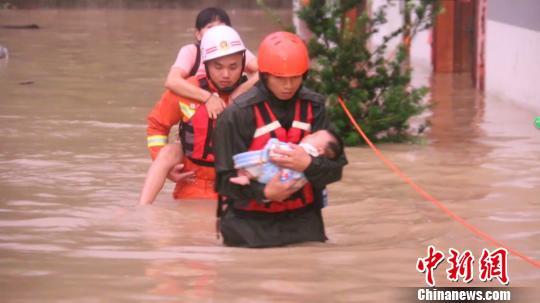 图为消防官兵救出几个月大的婴儿及其母亲。周彦林 摄