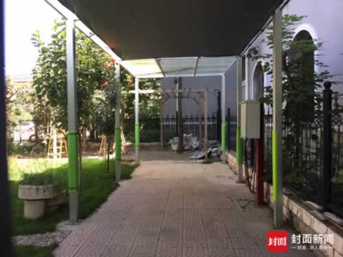 记者试图联系别墅主人,但多次按门铃均无人应答,隔着紧锁的院门,可以看到这栋别墅的窗户全部关闭,窗户里面拉上了白色窗帘。院内有一小片齐整的草坪,草坪尽头的防雨棚下建有一个电动汽车的充电桩。