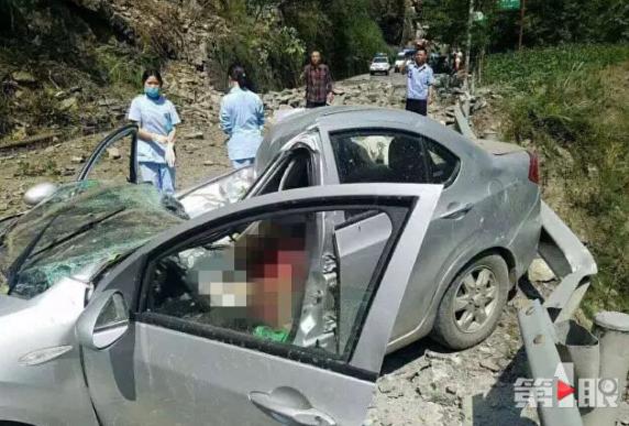 原标题:落石砸车致2人遇难 孕妇死前护住胎儿