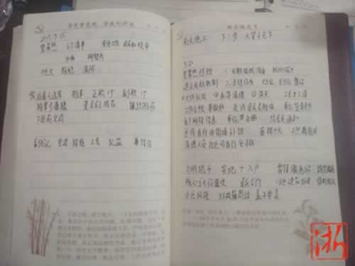 回到办公室,同事们都还在忙,社区书记邹紫娟正在等陈浩商量事。“两学一做”笔记本上,陈浩已经记下了周六的工作安排:“楼道为重点”“知晓率100%”“阳台、天井”“时间安排”。