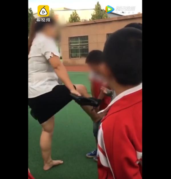 实拍女教师用鞋轮流敲打学生手掌视频