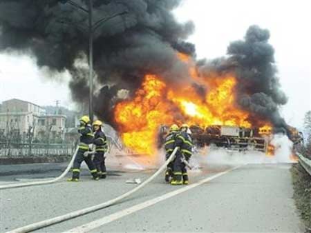 11月10日下午,在212省道凤县黄牛铺鲍家庄附近,一辆油罐车发生侧翻后起火,熊熊烈火将车体吞噬,现场浓烟滚滚。