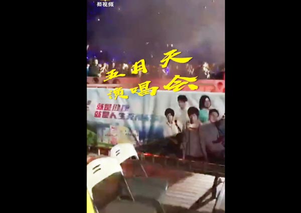 实拍五月天演唱会着火了!电线短路致通道火星直冒