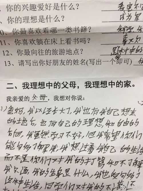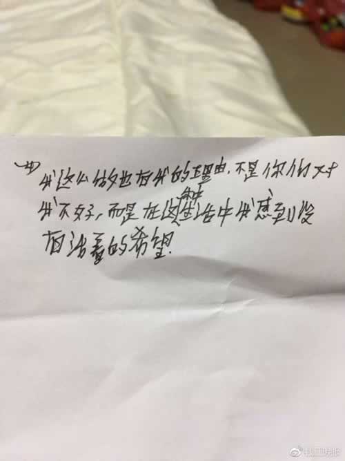 毛黎明在信中这样写道:爸妈,我已经长大了,我也有自己想去的地方,也有自己的理想和自由的方向,我虽然学习不好,但我希望你们能多了解我,我想过自己的生活,而不是你们对我的打骂和不了解,我知道,我也受够了这种生活,我这么做也有自己的理由,不是你们对我不好,而是在这种生活中感到没有活着的希望。