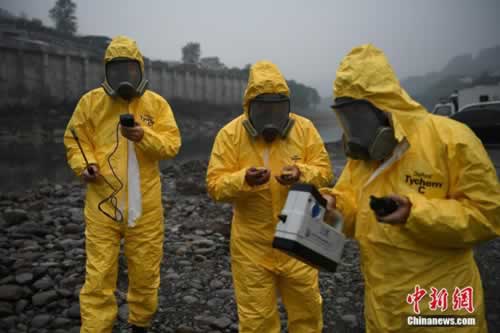 12月7日,为提高突发实战能力,国家(重庆)突发中毒事件处置队在重庆綦江区进行了水源污染现场处置专项演练。演练现场,假设了一辆载有危化品的运输车辆因车速过快,发生了侧翻,车上的危化品泄漏污染了当地水源。队员们接到应急突发指令后,对规定区域内的空气进行了检测,判断空气中是否有挥发的有毒有害物质,并对事故点附近的水源进行了采样,快速定性检测,判断污染水源的化学品种类,同时就近寻找水源,展开净水作业。