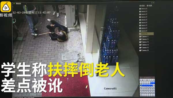 12月3日,江西上饶某中学,三位学生称:他们在放学路上看到一位老奶奶摔倒,上前扶起反被讹,幸亏路过的两名大学生帮忙查看监控,才化解了纠纷。