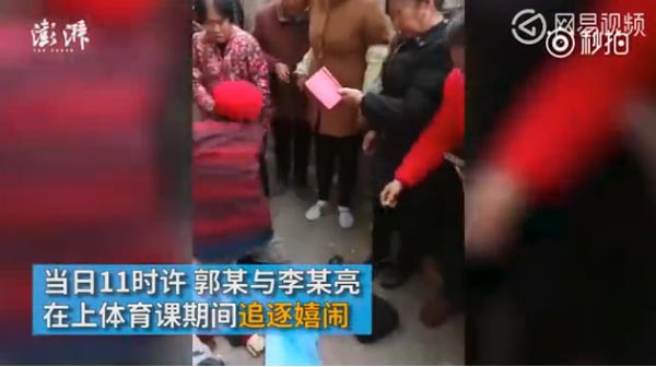 根据长宁警方官方微博“@平安长宁”的12月12日的通报,这起事件为一起发生在校园内的学生意外死亡事件。“12月12日11时23分许,郭某与李某亮在上体育课期间追逐嬉闹玩耍时,李某亮拿出所携带的一把棍刀挥舞,该棍刀从刀鞘中脱离,击中郭某的后背。事情发生后,老师和学校负责人紧急联系120到场急救,郭某经现场抢救无效身亡。”