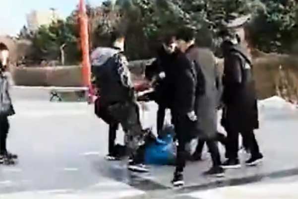 实拍内蒙古商都县一初中生遭9人连续殴打现场视频