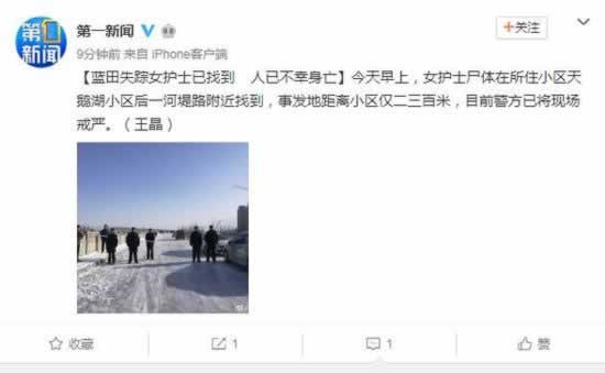 (原标题:蓝田失踪女护士已找到 人已不幸身亡)