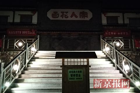 百花人家饭店暂停营业。外墙有火烧痕迹。新京报见习记者 张彤 摄