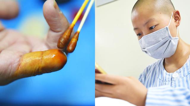 “我住不起医院啊!那是我女儿的救命钱!”正值中年的韩红新父母年迈多病,孩子们也都在上学的年纪,经济压力巨大。当得知接指手术需要两万多元时,他果断选择了放弃,身旁的妻子抹着眼泪却不敢阻止丈夫的决定。怕给女儿增加心理负担的韩红新,总是躲在另一个屋子。直到伤口好些之后,才轻描淡写地告诉女儿,自己的手只是碰了一下。