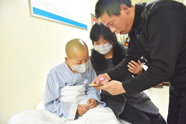 三次化疗过后,韩闪闪已经掉光了一头秀发。但懂事爱笑的她,脸上却常常挂着笑容。“病就是用来治的嘛,道理我都懂,我会勇敢和病魔作斗争的!”看着被折磨得没有血色的女儿,韩红新的妻子不停地抹着眼泪。虽然韩红新已经和女儿骨髓配型成功,但是等待他们的,是天文数字般的手术费。