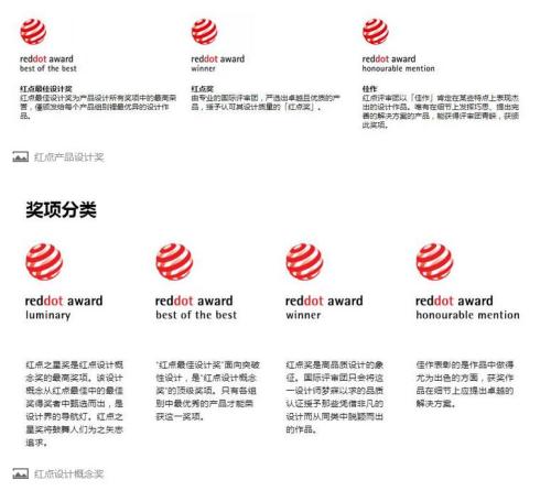 据媒体人魏巍介绍,红点奖奖项分为了产品设计、传播设计和设计概念奖三类。“红点奖”其实是红点奖中的低级别奖。