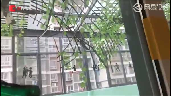 6月18日,记者来到位于中房F联邦小区的青果树F联邦幼儿园,由于节假日,幼儿园没有开园,但操场前坪已拉起警戒线。学生家长江女士告诉记者,15日,园内一栋三层建筑的顶楼接连两次被弹珠击穿。当天早上,家长送孩子来幼儿园时,发现顶楼体能房的顶棚都裂开了,“还有几块玻璃已经掉到了地上”。此外,顶棚上的装饰物也悉数脱落。“园方回复说可能是对面有人在搞恶作剧。”江女士说,事发后他们询问过园方,但园方说是恶作剧,之后就没有做其他说明。
