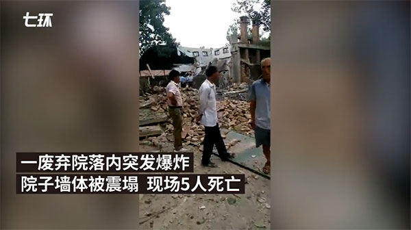 7月8日,河南鹤壁。一废弃院落内突发爆炸,现场5人死亡。院子墙体被震塌。浚县公安局通报称,爆炸案系嫌犯非法制造爆炸物引发。2名案发时不在现场的主要嫌犯被抓。