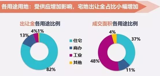 下图是2017年全国土地出让统计,工业用地占48%,而出让金只占4%,这些损失掉的土地出让金就从住宅用地来弥补,住宅用地占比例37%,出让金比例却占到82%。