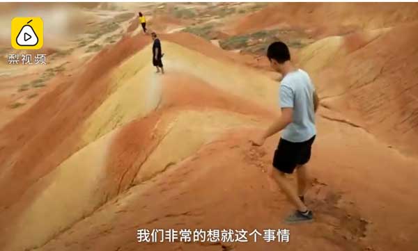 实拍多人闯丹霞保护区破坏地表还拍视频炫耀现场视频
