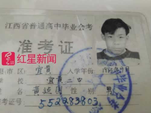 ▲黄建国当年的准考证