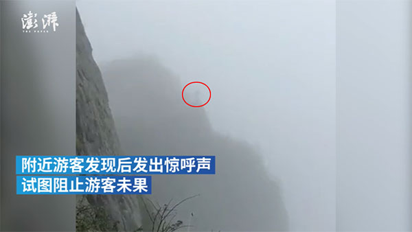 9月12日,四川乐山。峨眉山金顶舍生崖,一游客翻越护栏后坠崖。金顶管理处工作人员告诉澎湃新闻,事发时游客少,正搜救,游客情况暂不明。此前一女子在金顶坠崖身亡。