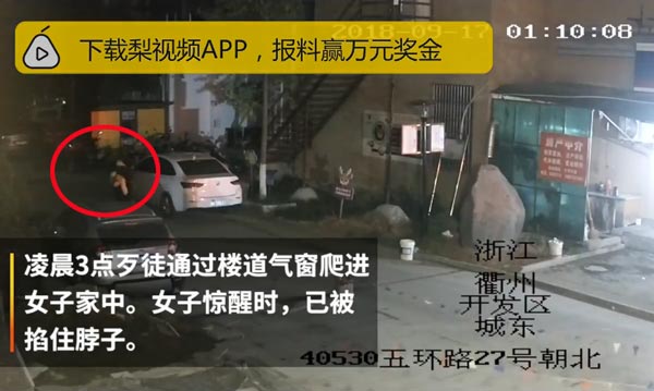 监拍浙江一女子熟睡遭人掐脖惊醒视频