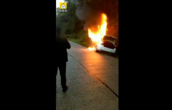 实拍湖南一小车突发起火路人提水救援车内3人均遇难现场视频