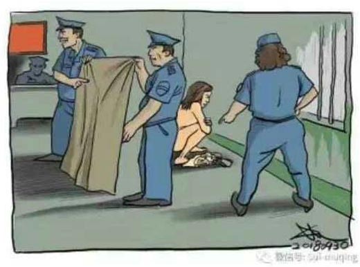 那天她抱着孩子进入办案区后,陈警察也是以怀疑她藏有凶器为名,强制她在孩子面前脱光衣服。