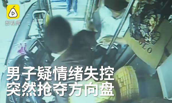 监拍贵阳一男子抢夺方向盘乘客合力拖下公交现场视频