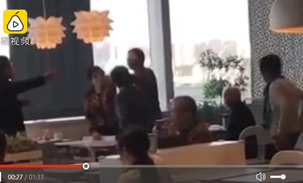 实拍上海宝山宜家3老太为一老头争风吃醋大打出手现场视频